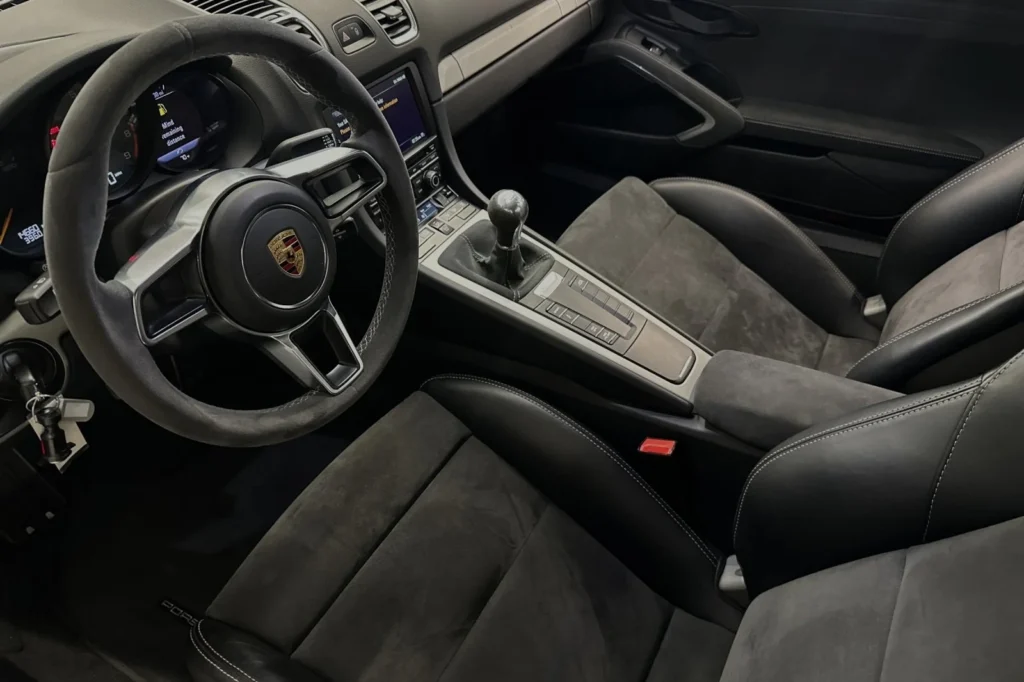 The 2016 Porsche Cayman GT4 is a high-performance sports car that embodies the perfect blend of agility and power. This particular model, in Agate Grey Metallic, boasts a sleek and aggressive design with aerodynamic enhancements, making it a true driver’s car. Equipped with a manual transmission, the GT4 offers an engaging driving experience. It’s powered by a robust 3.8-liter flat-six engine, delivering exceptional power and acceleration. This pre-owned model is in excellent condition, ensuring a thrilling and reliable ride.