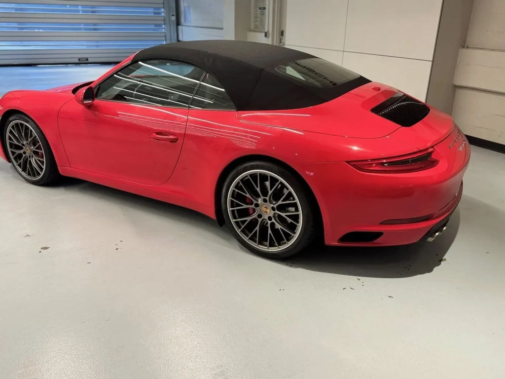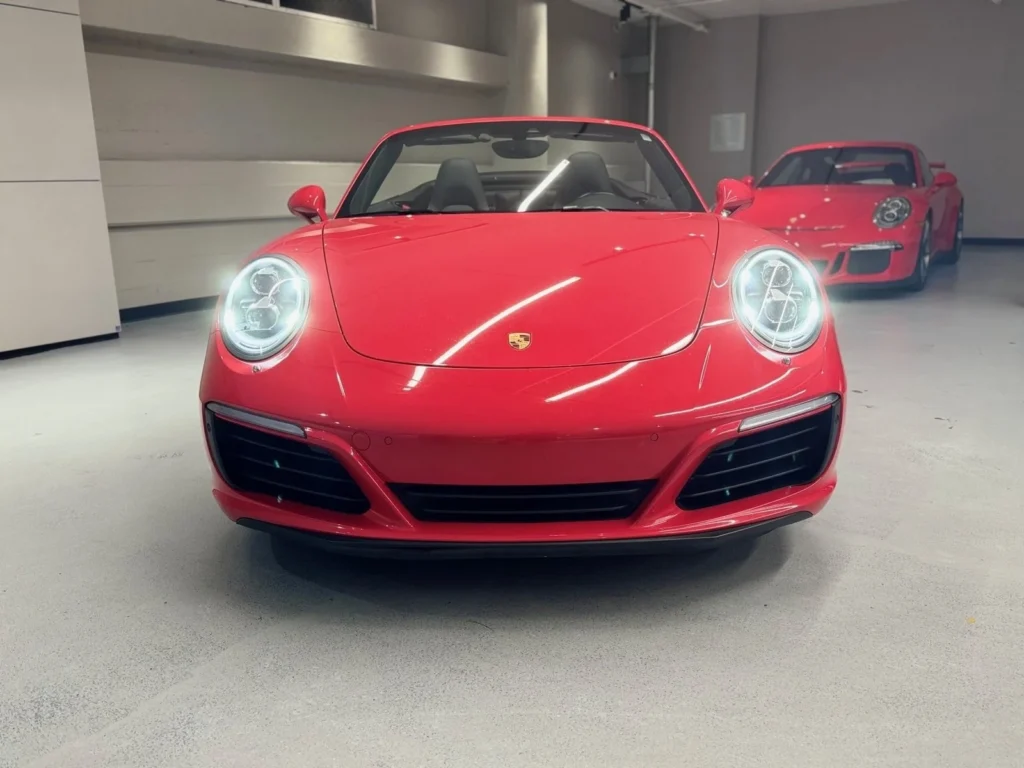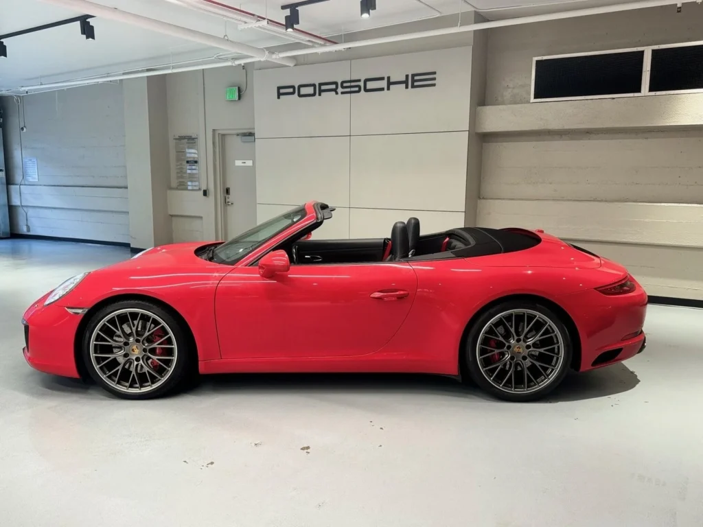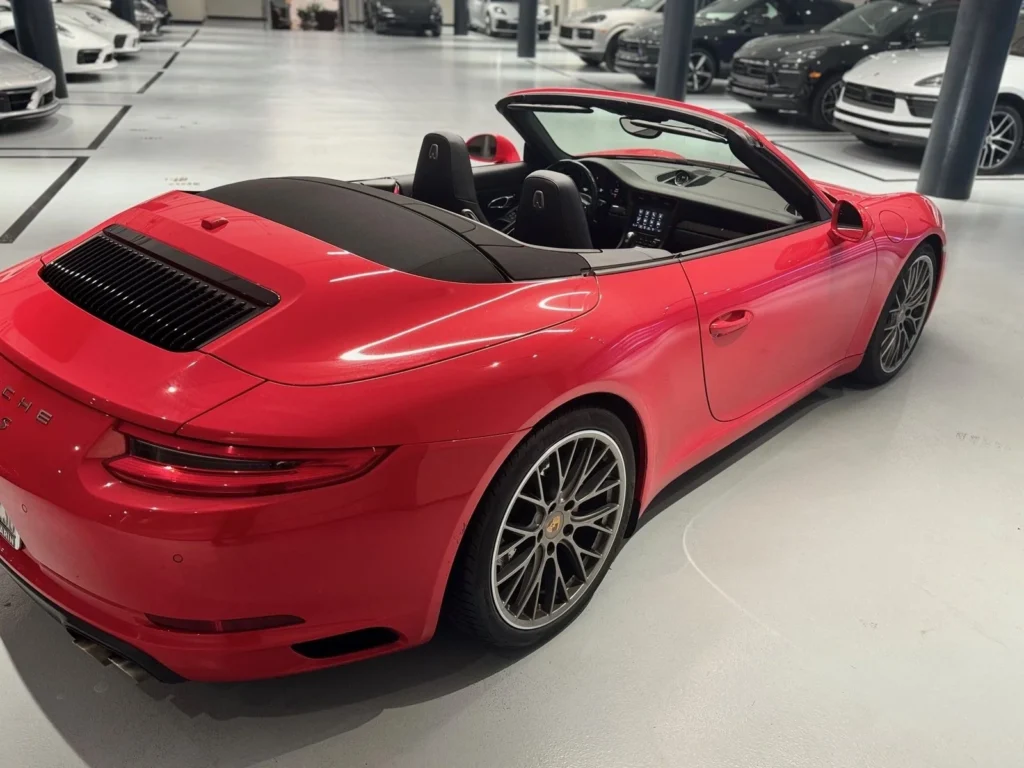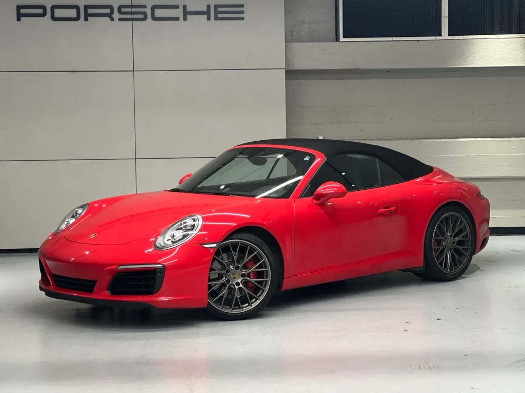 The 2017 Porsche 911 Carrera S Cabriolet, finished in striking Guards Red, combines classic design with modern performance. This convertible sports car is known for its precision engineering and exhilarating driving dynamics. The Carrera S Cabriolet features a twin-turbocharged 3.0-liter flat-six engine that delivers powerful acceleration and a thrilling top-down driving experience. With its rear-wheel drive, sporty suspension, and advanced features, this pre-owned 911 Carrera S Cabriolet offers a perfect blend of luxury and performance, ensuring every drive is a memorable one.