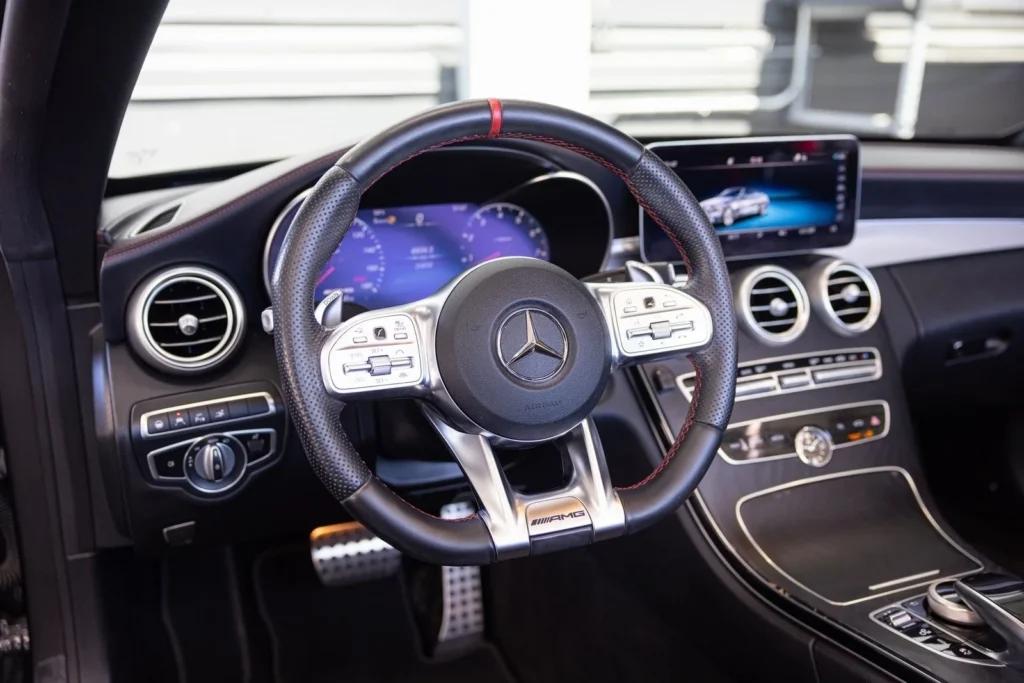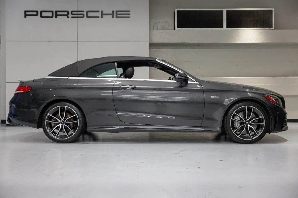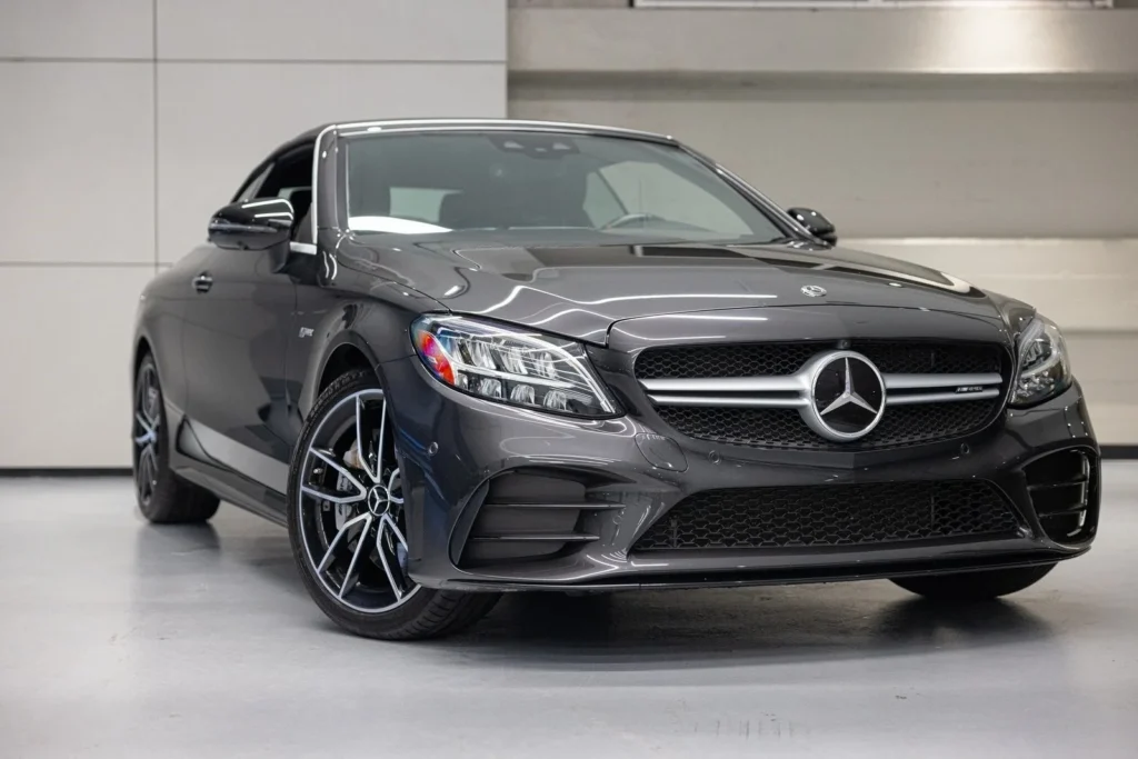 The 2021 Mercedes-Benz AMG C 43 4MATIC® combines luxury and performance in a sleek package. With its powerful engine, refined interior, and advanced technology, this car delivers a thrilling driving experience. The AMG® C 43 trim adds sporty styling cues, enhanced handling, and a distinctive sound that emphasizes its performance credentials. This model, finished in Graphite Gray Metallic, offers a dynamic blend of style and substance, perfect for those seeking both comfort and agility on the road.