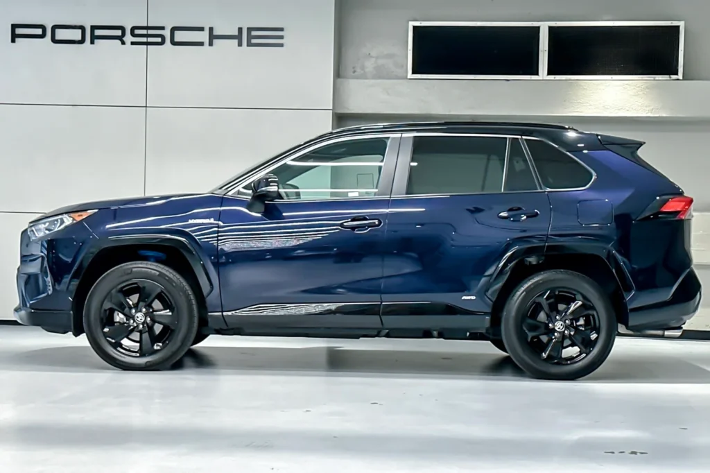 The 2021 Toyota RAV4 Hybrid XSE in Blue Print is a versatile and fuel-efficient compact SUV designed for both city driving and adventurous trips. With a hybrid powertrain combining a 2.5L 4-cylinder engine and electric motors, it delivers impressive fuel economy without compromising on performance. The XSE trim adds a sporty touch with a unique exterior design, including a two-tone roof, black accents, and 18-inch alloy wheels. Inside, the RAV4 Hybrid XSE offers advanced technology, spacious seating, and a range of features designed for comfort and convenience.