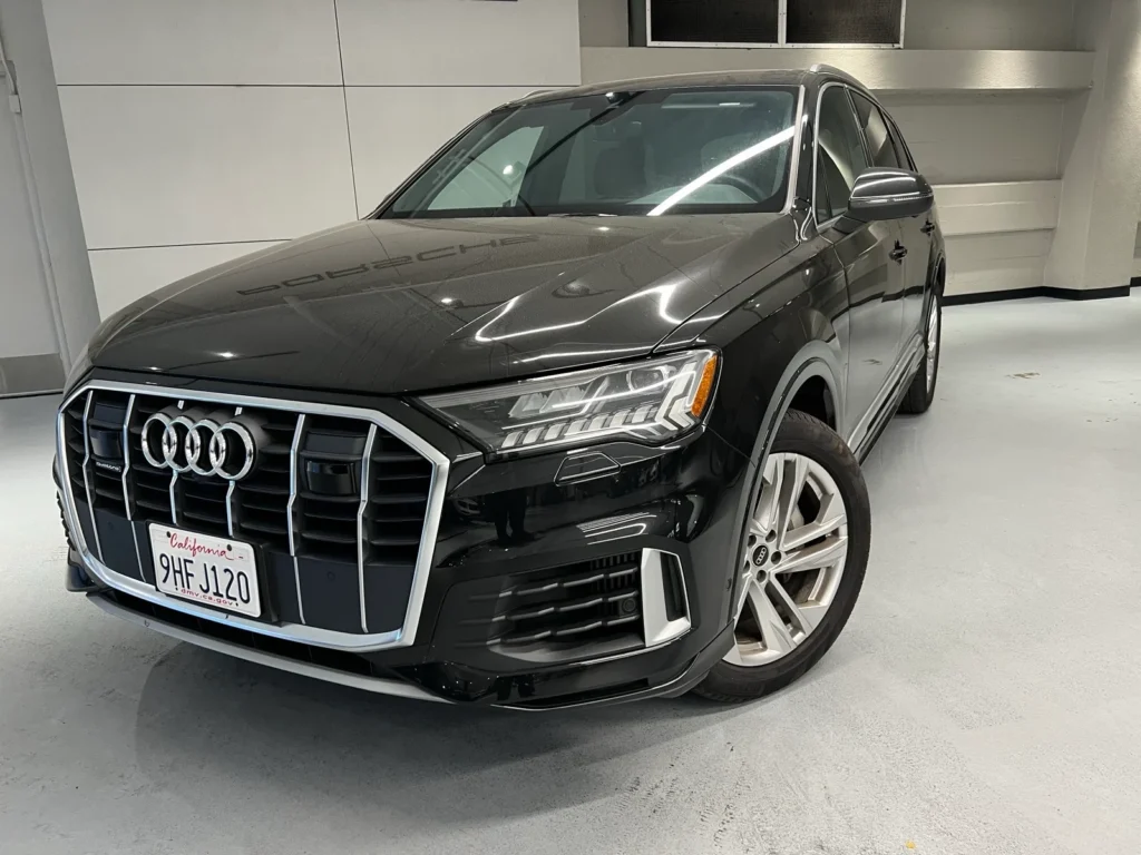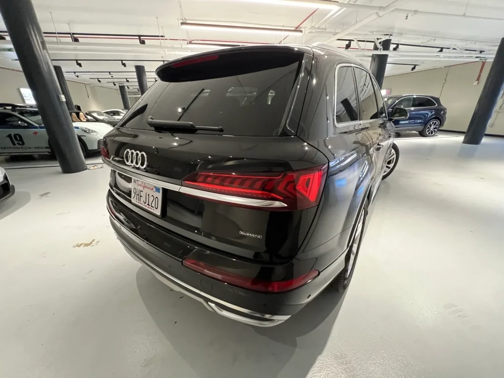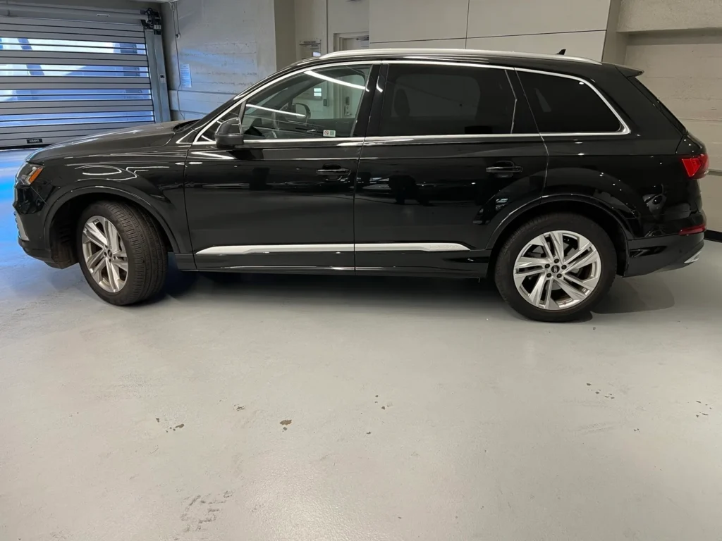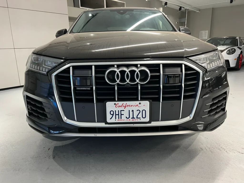 The 2023 Audi Q7 55 Premium Quattro in Mythos Black Metallic is a luxury SUV that combines performance, style, and advanced technology. Powered by a turbocharged 3.0-liter V6 engine, this SUV delivers a dynamic driving experience with the confidence of Audi’s renowned quattro all-wheel drive. The Q7 offers a spacious and refined interior, featuring high-quality materials, advanced infotainment, and cutting-edge driver assistance systems, making it perfect for both city driving and long road trips.