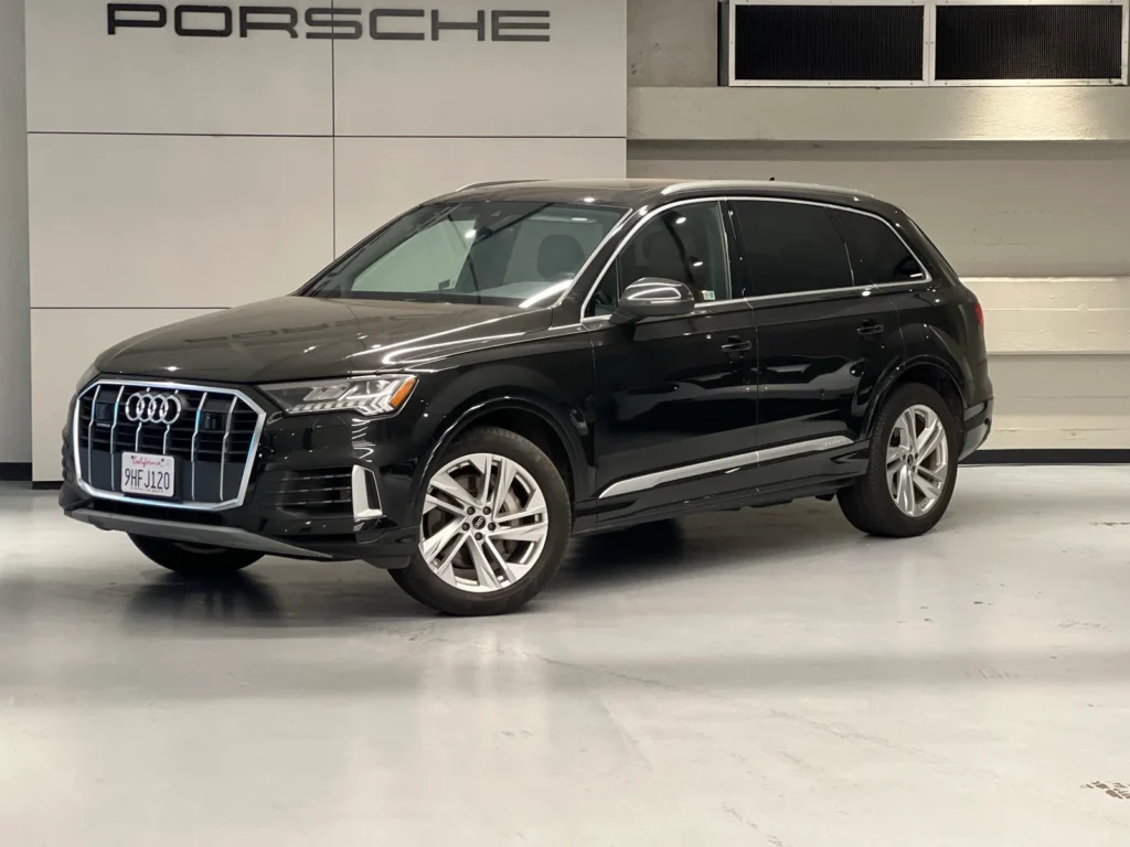 The 2023 Audi Q7 55 Premium Quattro in Mythos Black Metallic is a luxury SUV that combines performance, style, and advanced technology. Powered by a turbocharged 3.0-liter V6 engine, this SUV delivers a dynamic driving experience with the confidence of Audi’s renowned quattro all-wheel drive. The Q7 offers a spacious and refined interior, featuring high-quality materials, advanced infotainment, and cutting-edge driver assistance systems, making it perfect for both city driving and long road trips.