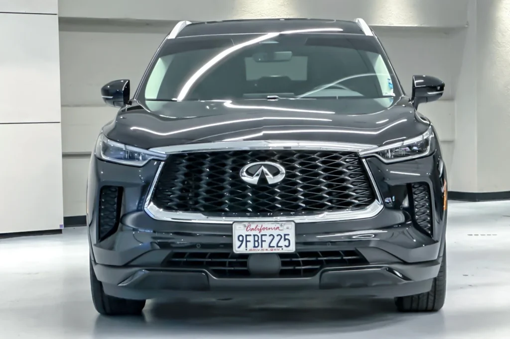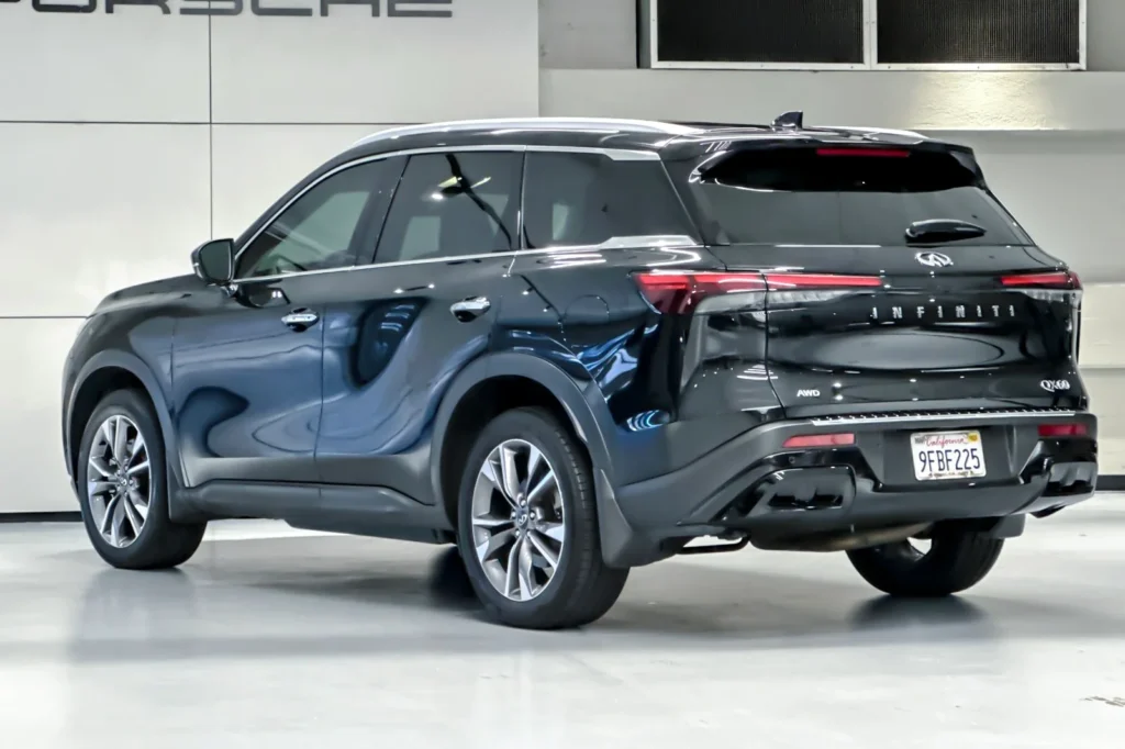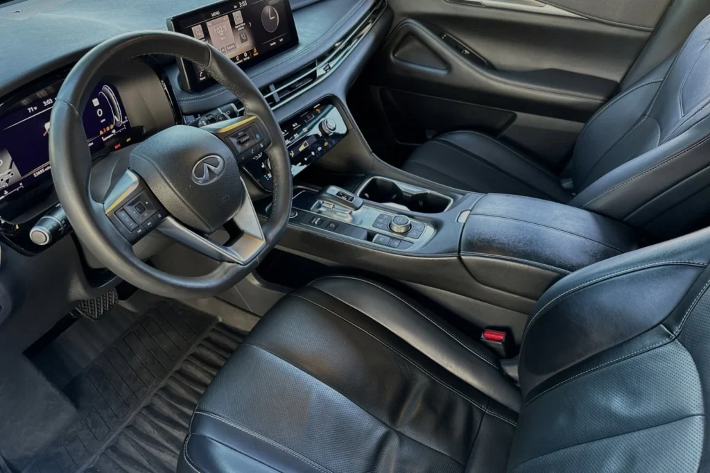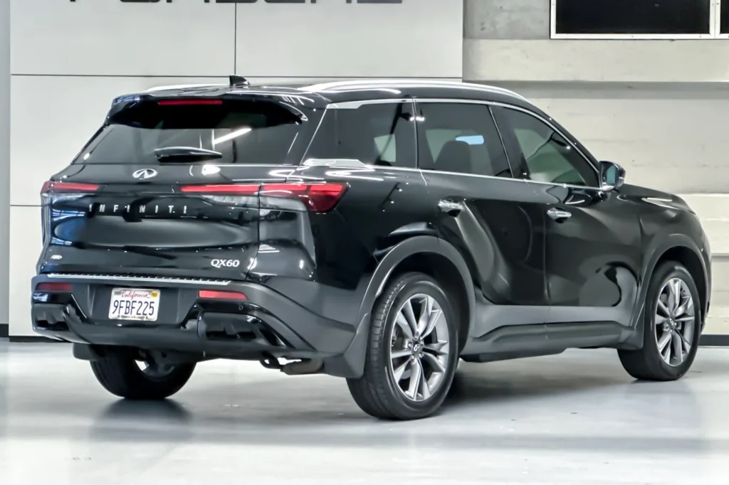 The 2023 INFINITI QX60 LUXE is a luxury midsize SUV that blends comfort, technology, and performance. It features a stunning Mineral Black exterior that gives the vehicle a sophisticated and elegant look. Powered by a 3.5L V6 engine, this SUV provides a balanced mix of power and efficiency, perfect for daily commutes and family road trips. The 9-speed automatic transmission ensures smooth gear shifts and enhances driving dynamics. With its all-wheel-drive (AWD) system, the QX60 LUXE offers enhanced traction and control, making it suitable for various road conditions. The spacious interior, crafted with premium materials, provides comfort and luxury for all passengers, while advanced technology features keep everyone connected and entertained on the go.