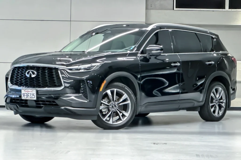 The 2023 INFINITI QX60 LUXE is a luxury midsize SUV that blends comfort, technology, and performance. It features a stunning Mineral Black exterior that gives the vehicle a sophisticated and elegant look. Powered by a 3.5L V6 engine, this SUV provides a balanced mix of power and efficiency, perfect for daily commutes and family road trips. The 9-speed automatic transmission ensures smooth gear shifts and enhances driving dynamics. With its all-wheel-drive (AWD) system, the QX60 LUXE offers enhanced…