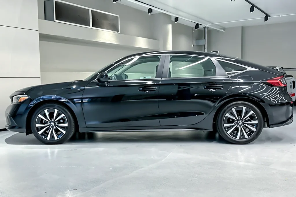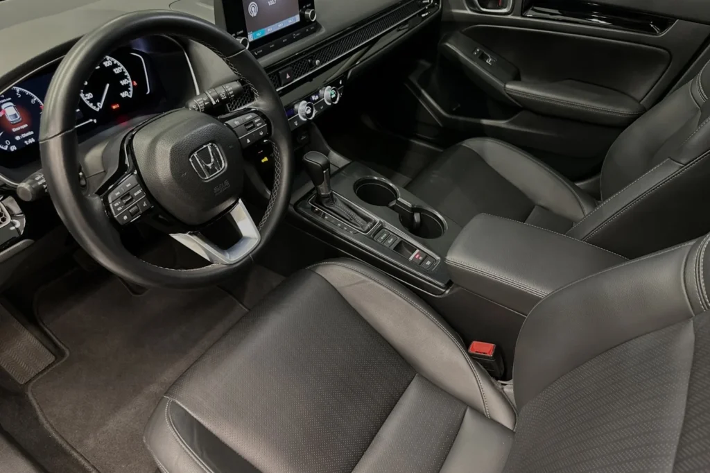 The 2024 Honda Civic EX-L in Crystal Black Pearl is a compact sedan that blends efficiency, comfort, and advanced features. Powered by a 1.5-liter turbocharged engine paired with a CVT, the Civic EX-L offers a smooth and responsive drive. The EX-L trim enhances the Civic’s appeal with leather-trimmed seats, a power-adjustable driver’s seat, and an advanced infotainment system. Ideal for daily commuting and long drives, this Civic combines practicality with a touch of luxury.